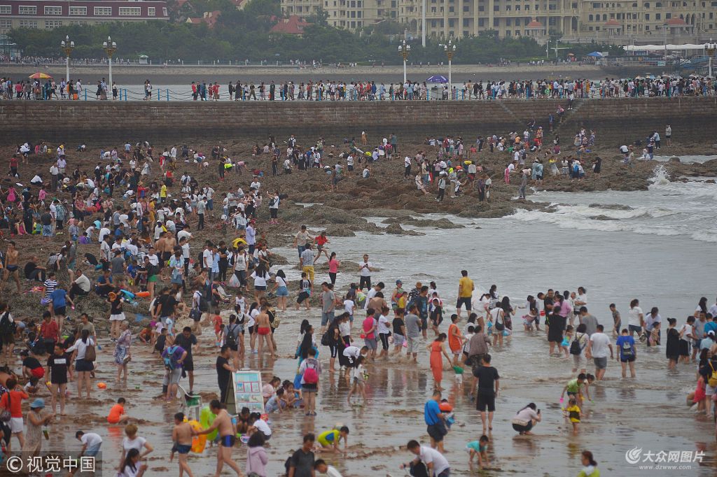 2018年8月18日,臺風(fēng)“溫比亞”影響青島,眾多游客在棧橋看海觀潮。圖片作者:王海濱/視覺中國