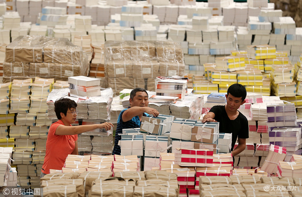2018年8月22日,山東濰坊,新華書店工作人員正在清點搬運即將送往中小學(xué)校的新學(xué)期課本。新學(xué)期臨近,連日來,山東省濰坊市新華書店對各中小學(xué)新學(xué)期的課本進行分類清點、驗收分配,趕在新學(xué)期開學(xué)前夕送達各中小學(xué)校,確保新學(xué)期學(xué)生們的課本供應(yīng)。