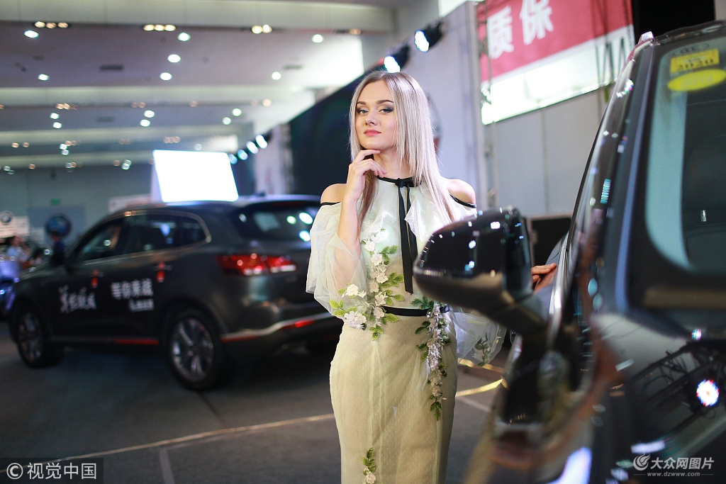 2018年9月9日,山東日照,秋季車展正在如火如荼的進行,現(xiàn)場還請來了洋模特助陣提升人氣,金發(fā)碧眼的洋模特閃亮車展現(xiàn)場。