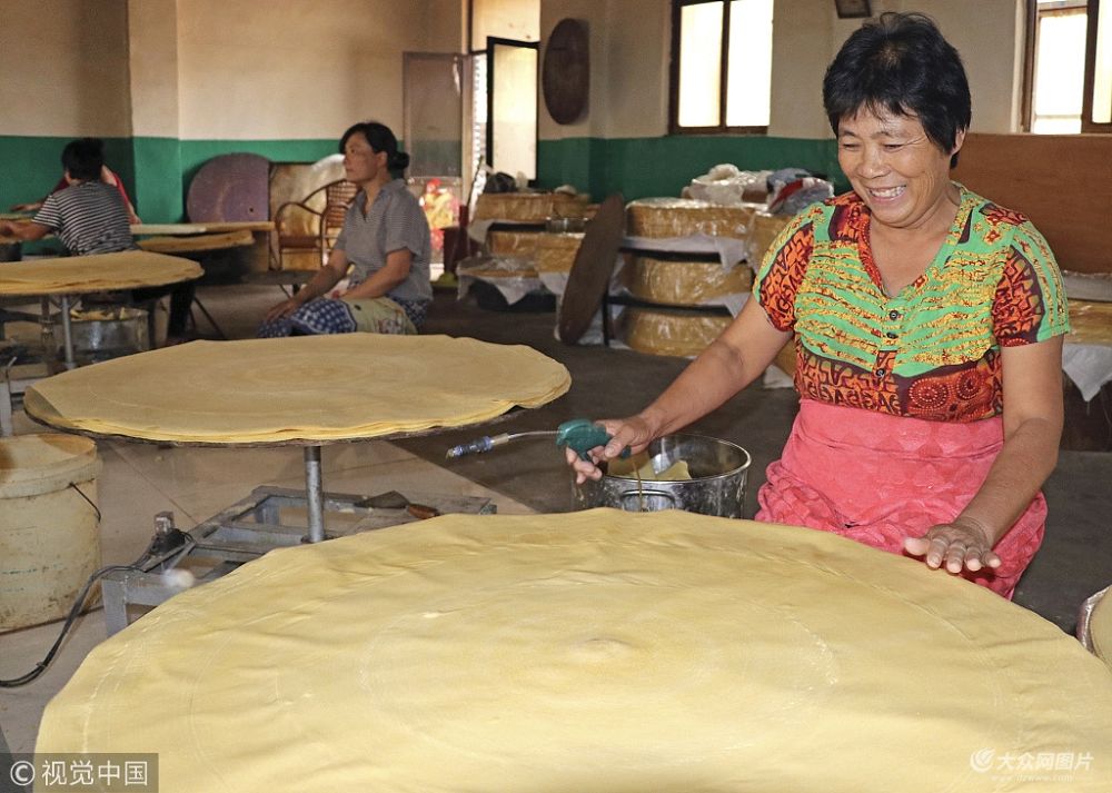 在山東省寧陽縣,有個歷史悠久的“煎餅村”——東莊鎮(zhèn)東山陰村,家家戶戶會攤煎餅,生產(chǎn)玉米、小米、高粱等各種口味。曾經(jīng)攤煎餅送紅軍的故事還被村民們畫到了墻上。