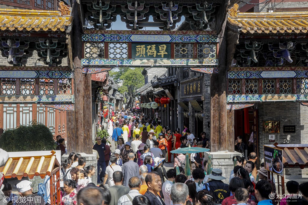 2018年9月22日,山東淄博周村大街店鋪林立,建筑風(fēng)格迥異,游人如織。圖片作者:視覺(jué)中國(guó)