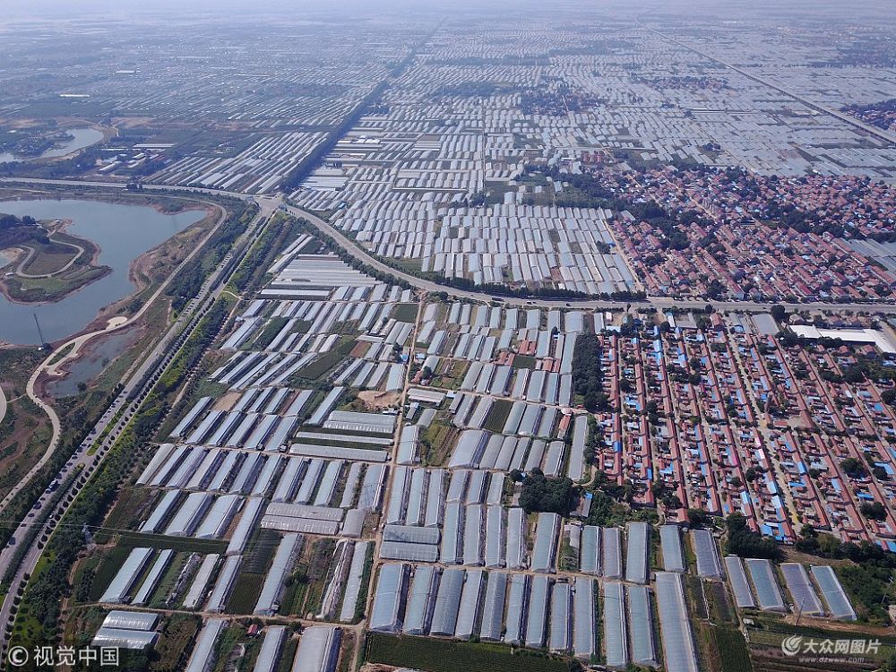 2018年9月24日,空中航拍壽光市彌河兩岸,成千上萬的大棚猶如大海波濤,相當壯觀。