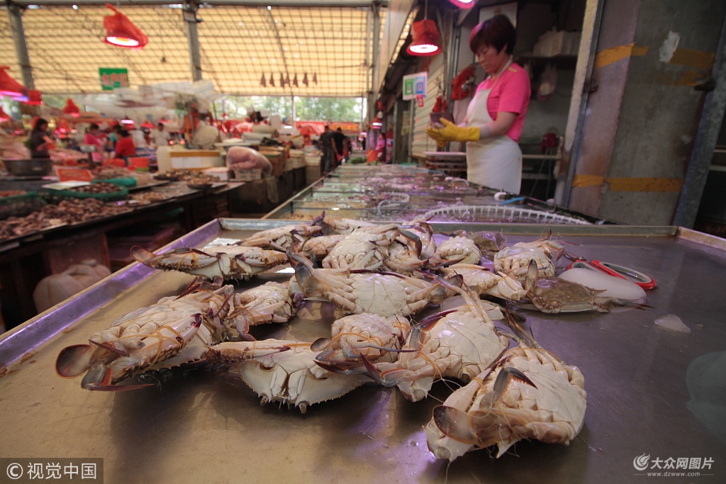 2018年9月29日,青島,圖為市場上售賣的螃蟹。