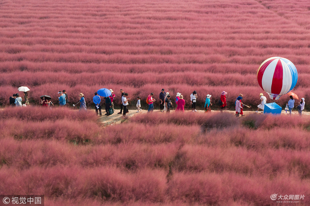 2018年10月3日,游客在南京市溧水區(qū)郭興莊園的“粉紅田野”中游玩。