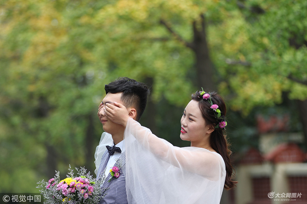 2018年10月9日,新人在青島八大關(guān)拍攝婚紗照。