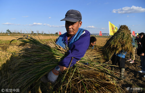 大眾網(wǎng)青島10月11日訊(記者 高忠業(yè) 王永強 王悅音 毛道光)秋收時節(jié),位于青島市城陽區(qū)上馬街道的鹽堿地稻作改良示范基地一片金黃,燦爛的稻穗隨風(fēng)飛舞。這也意味著,以城陽上馬為代表的濱海小流域鹽堿地也可變成良田。10日晚8點,青島農(nóng)業(yè)大學(xué)教授林琪作為組長,帶領(lǐng)七名專家組成的驗收小組,對基地內(nèi)種植的YC-1803型號水稻材料進(jìn)行測評,實測畝產(chǎn)261.39公斤,接近袁隆平院士畝產(chǎn)300公斤的目標(biāo)。袁隆平在視頻連線時稱:“對此次測產(chǎn)結(jié)果滿意不滿足!
