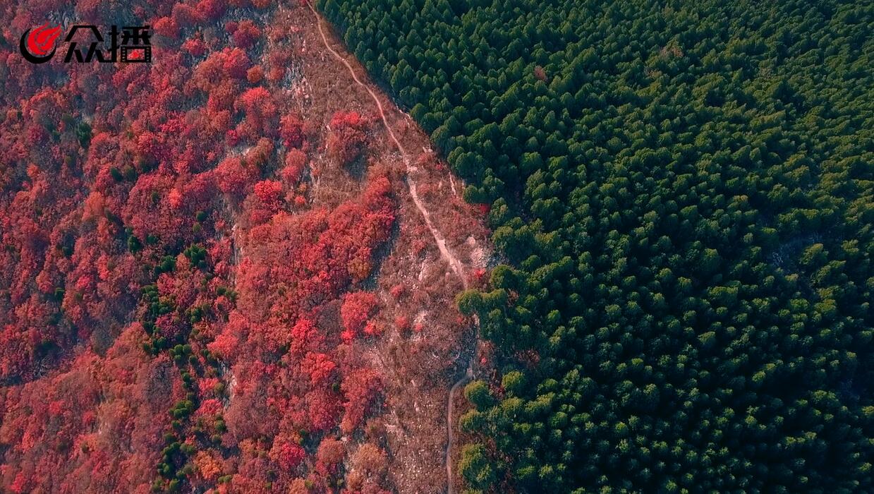 大眾網(wǎng)濟南11月1日訊 進入深秋,濟南漫天紅葉將這個季節(jié)點綴地更美!最近,記者在濟南市蝎子山發(fā)現(xiàn),這座山的南側山體種植的黃櫨樹葉子由綠變紅,形成了兩萬多平米的紅葉林。另一側,山體北側翠綠的松樹林和南山坡的紅葉形成鮮明對比。這半紅半綠的獨特景色最近在網(wǎng)上瞬間走紅,大眾網(wǎng)記者今天用航拍器記錄了這美不勝收的一幕。(大眾網(wǎng)-山東24小時客戶端記者 孫博洋 張珈瑋)