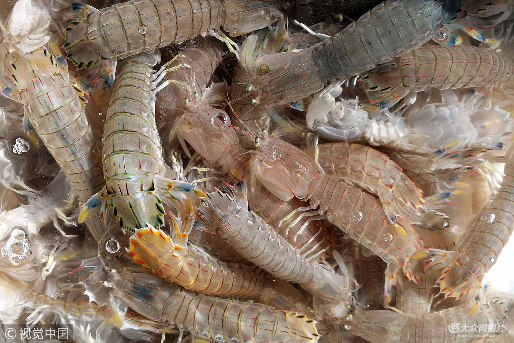 2019年1月6日,山東青島西海岸新區(qū)積米崖海鮮市場(chǎng),大皮皮蝦60元一斤。