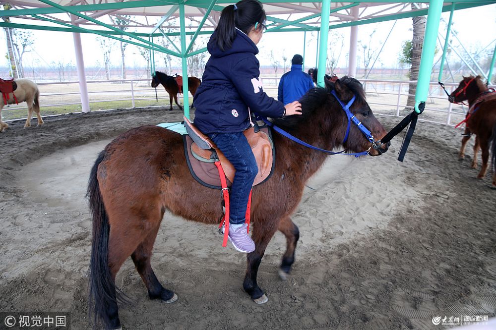 2019年2月1日,江蘇南通森林野生動物園的“旋轉馬”項目。針對近期網友熱議的所謂“活馬版‘旋轉木馬’”項目,南通森林野生動物園“馬術俱樂部”張教練在現場演示介紹時表示, 每天都要通過遛馬增強馬的運動量,不遛不運動的話,馬吃草吃料都沒那么多胃口;國內國外有的馬場平時遛馬就有類似的裝置,專門有軌道和橫桿,我們這個是簡化的,而且是沒有機器牽引,馬的走走停停都靠口號就可以控制,也不是走個不停;在馬的飼養(yǎng)方面都是很用心的,馬的屁股都是圓圓的,如果飼養(yǎng)的不好,會特別瘦;這個馬是廣西的矮馬,是成年的馬。都是經過訓練,都很乖的,給個口號怎么摸都可以,也是希望通過這個項目給小朋友一種全新體驗,接觸動物了解動物。