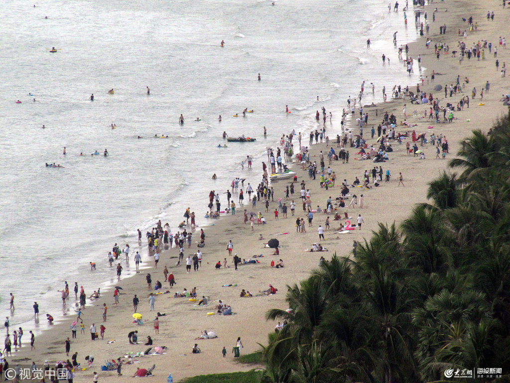 2019年2月7日,海南省三亞灣景區(qū)迎來春節(jié)客流高峰期,眾多游客在海邊休閑度假。