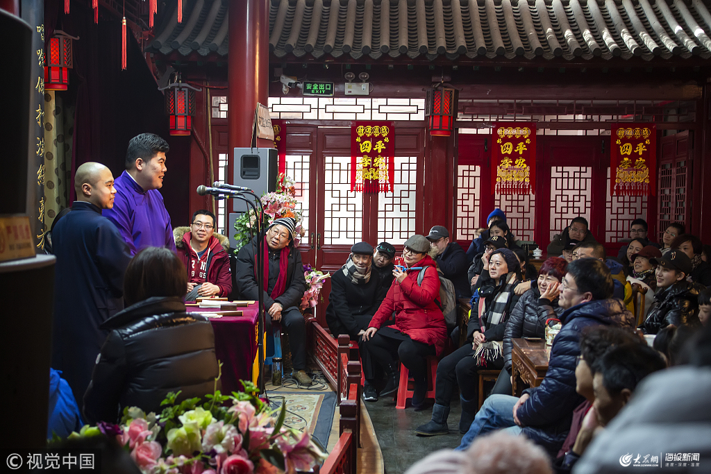 2019年2月7日,天津鼓樓。天津傳統(tǒng)相聲作為天津打造特色旅游的主打產(chǎn)品,在春節(jié)期間吸引了眾多游客,春節(jié)演出場場爆滿,座無虛席,加座游客甚至坐到了演出臺上,與演員同臺,精彩的演出得到全國各地游客的熱烈喜愛和強烈推薦。