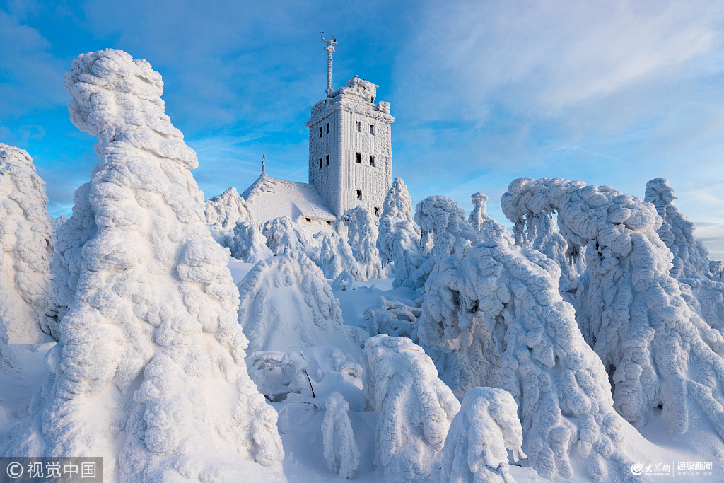 2019年2月9日訊(具體拍攝時間不詳),這座看似超現(xiàn)實的山被4英尺厚的雪覆蓋后,就像童話般的冬日仙境。森林,甚至包括氣象站都被雪完全覆蓋,樹木和其他植被幾乎無法辨認。這些令人驚嘆的大雪照片是在德國薩克森的4000英尺高的費希特爾伯格山上拍攝的。雜貨商Christoph Schaarschmidt從家里出發(fā),經(jīng)過一個半小時的跋涉,穿過厚厚的積雪到達氣象站,捕捉到了這一不可思議的場景。圖片作者:Solent News/視覺中國