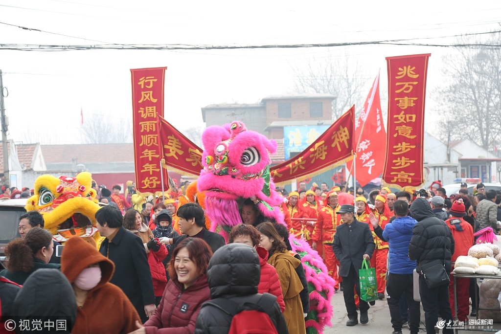 2019年2月22日,山東煙臺。上午八點熱場結束,村民代表帶領祭祀團前往海神廟遺址。據(jù)悉位于海廟姜家村的海神廟始建于西漢年間至今已有兩千余年,這是歷代皇家祭海的道場。