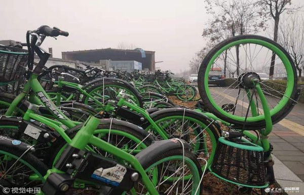 西安上千輛電動共享單車存放在綠化帶內(nèi)