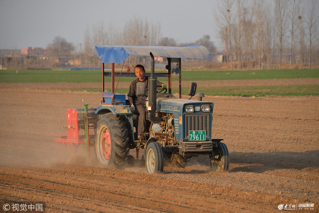 2019年3月14日,在山東省聊城市茌平縣賈寨鎮(zhèn)馮莊村,村民駕駛著拖拉機整理土地,準備栽種甘藍。