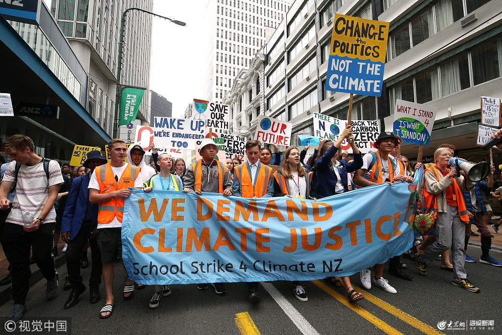 當地時間2019年3月15日,新西蘭惠靈頓,數千名學生舉行罷課抗議活動,敦促政界人士對氣候變化采取緊急行動。