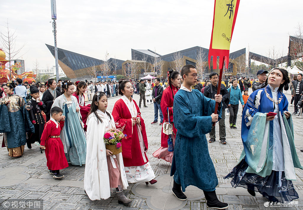 2019年3月16日,武漢,漢口里舉辦了為期一周的花朝節(jié),幾百位身著傳統(tǒng)漢服和民族服飾的人們在花朝節(jié)上或走秀,或表演傳統(tǒng)節(jié)目,引得近萬市民前往觀賞和游玩。
