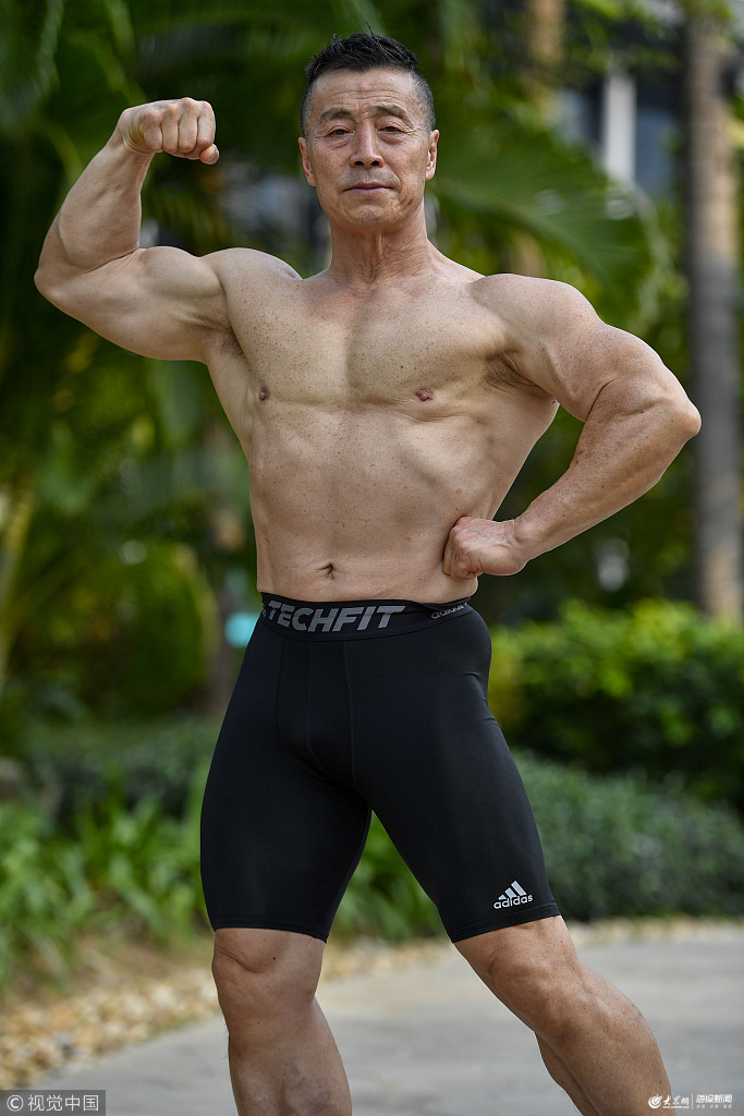 2019年3月12日,三亞。楊新民展示肌肉。楊新民,1949年生人,“一開始我是喜歡健美,后來我發(fā)現(xiàn)健美不光是一種體育運(yùn)動(dòng),而且是一種生活方式。健美是一種人體的雕塑,你就是雕塑家,在雕塑你自己的形體,也雕塑你的人生!