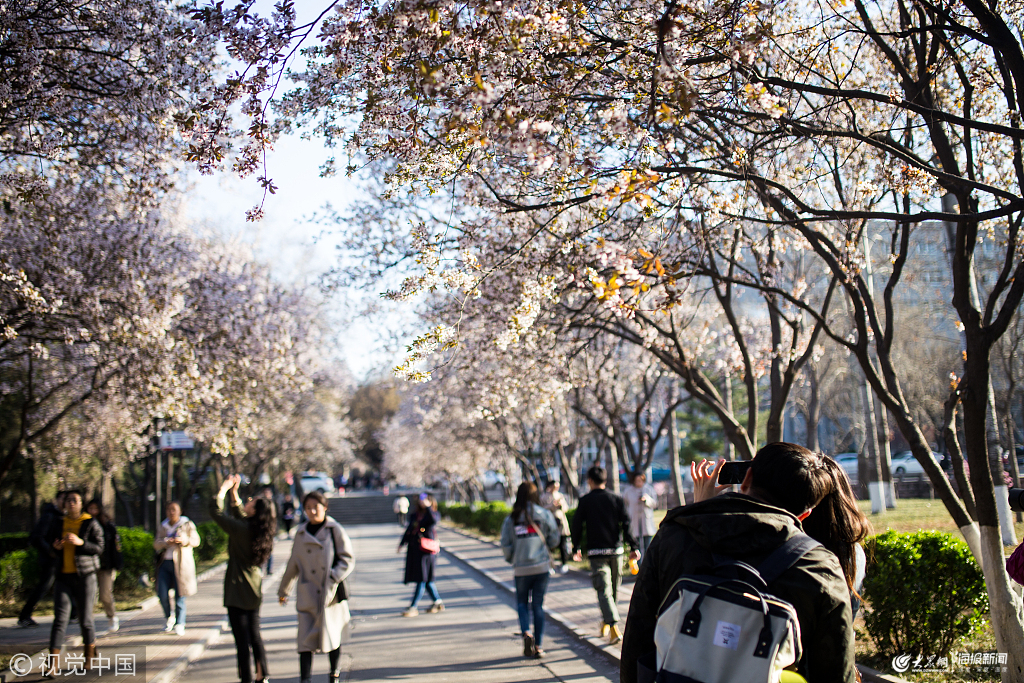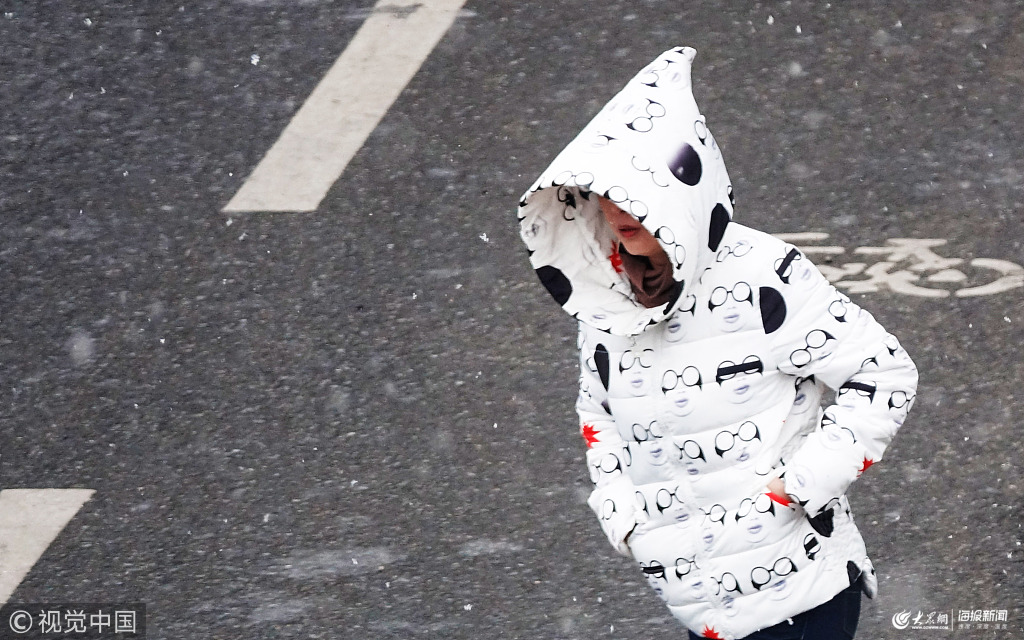 2019年3月30日,人們?cè)诖筮B市華泉街頂風(fēng)冒雪出行。當(dāng)日,遼寧大連地區(qū)出現(xiàn)雨夾雪和大風(fēng)降溫天氣,風(fēng)寒效應(yīng)十分明顯。大連市氣象臺(tái)先后發(fā)布了大風(fēng)黃色預(yù)警信號(hào)和道路結(jié)冰黃色預(yù)警信號(hào)。