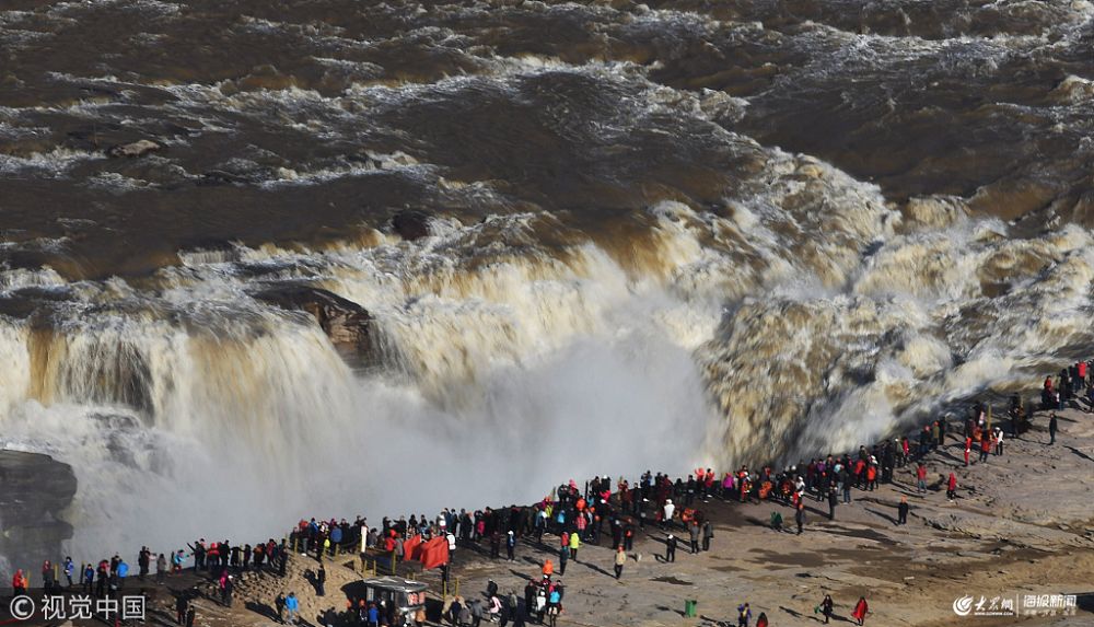 2019年3月30日,眾多游客在山西吉縣黃河壺口瀑布欣賞“桃花汛”。近日,受上游融冰開河和萬家寨水庫(kù)調(diào)節(jié)放水影響,山西吉縣黃河壺口瀑布迎來一年一度的 “桃花汛”。壺口瀑布水流增大,形成壯美瀑布群,吸引了眾多游客。“桃花汛”是指每年三月下旬到四月上旬,黃河內(nèi)蒙古段冰凌消融形成春汛。當(dāng)其流至下游時(shí),由于恰逢沿岸山桃花盛開,故被稱為“桃花汛”。