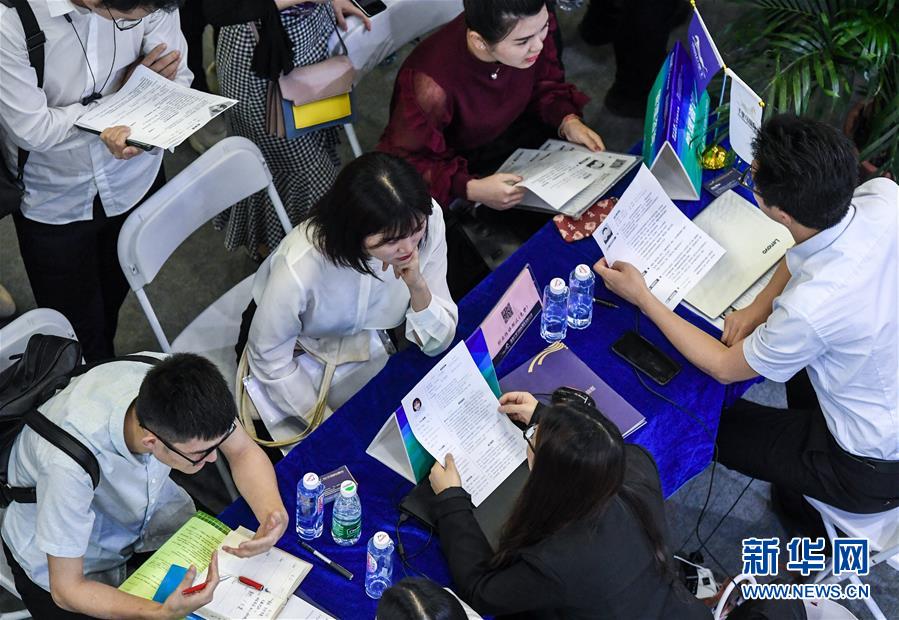 4月14日,在第十七屆中國國際人才交流大會設(shè)置的招聘會上,求職者與用人單位工作人員交流。當日,第十七屆中國國際人才交流大會在深圳啟幕,來自50多個國家和地區(qū)的4000多家專業(yè)機構(gòu)和組織、4萬余名海內(nèi)外政府代表、專家學(xué)者、高端人才應(yīng)邀參展參會。 新華社記者 毛思倩 攝