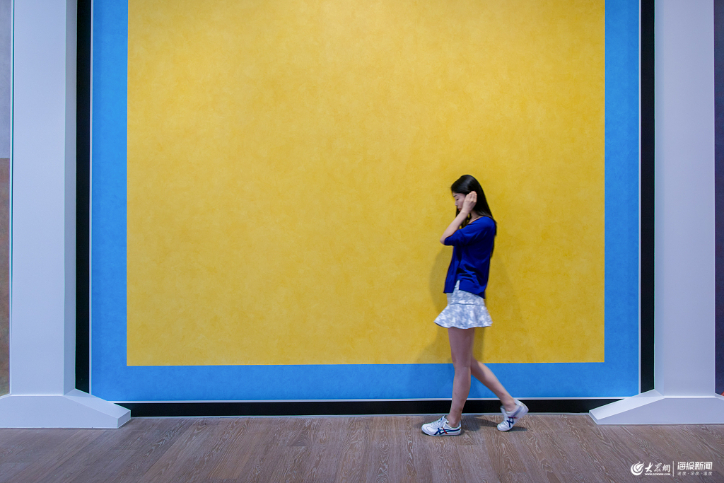 2019年5月24日,上海,當(dāng)天下午,觀眾正在外灘虎丘路貝浩登畫(huà)廊內(nèi)參觀“墻繪”藝術(shù)展。展覽現(xiàn)場(chǎng)大面積的幾何色塊給人以獨(dú)特的視覺(jué)沖擊力。