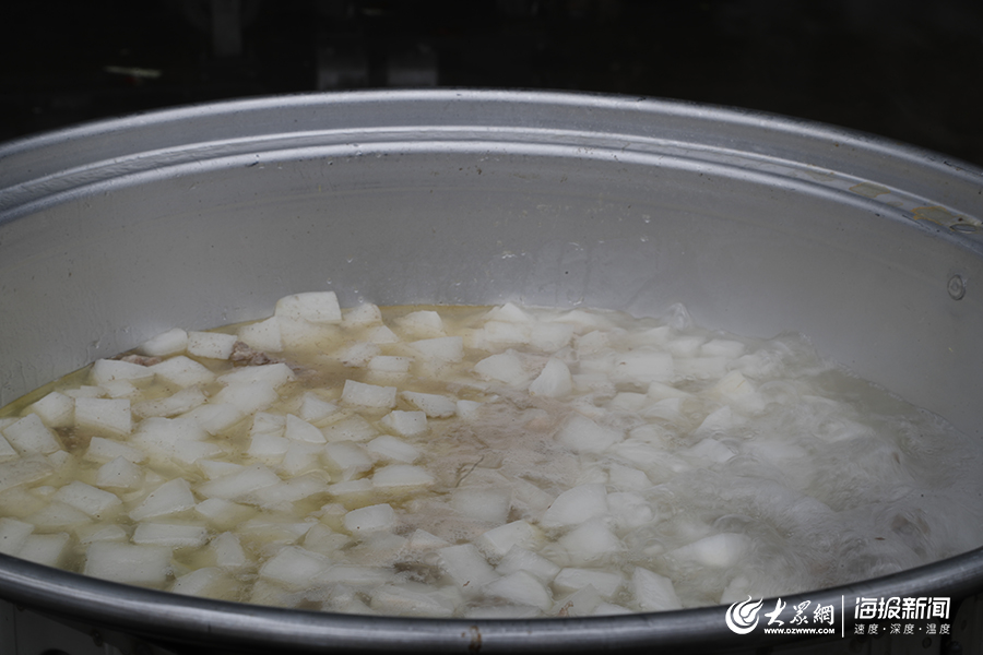6月19日中午,武警為群眾提供的蘿卜排骨湯