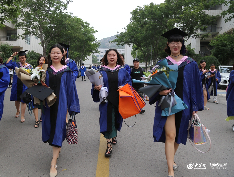 大眾網(wǎng)·海報新聞濟南6月21日訊(記者 儀首歌)6月20日,山東藝術學院2019屆碩士研究生畢業(yè)典禮暨碩士學位授予儀式在長清校區(qū)舉行,三百余名畢業(yè)生告別“象牙塔”,踏上新征程,不少老師和畢業(yè)生都收到了鮮花和祝福,歡慶這場青春的盛會。圖為去往畢業(yè)典禮的路上,畢業(yè)生們手捧鮮花,面露笑容,邁出自信美麗的步伐。