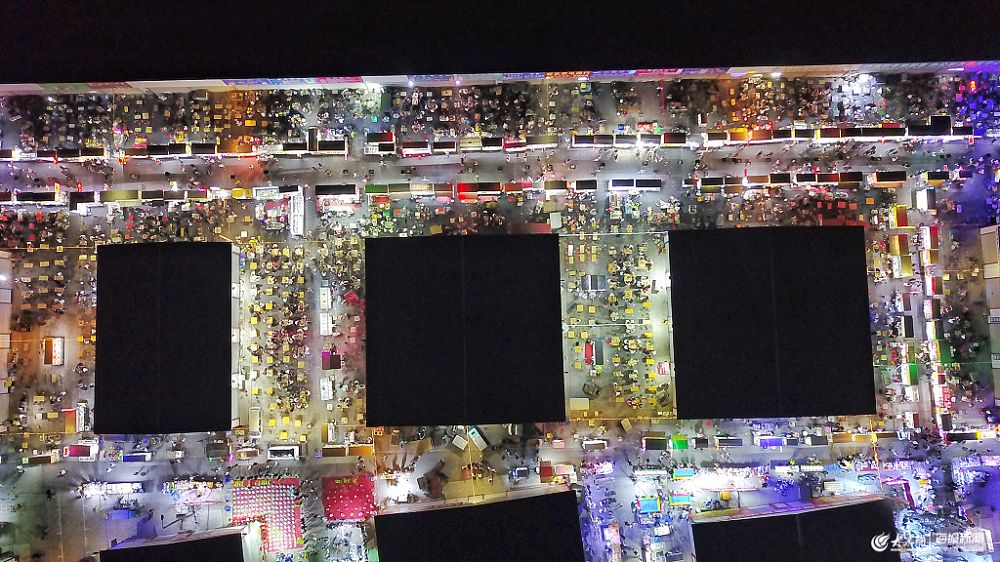 近日,濟(jì)南不少夜市先后開放,讓泉城夜貓子們有了好去處。如今論濟(jì)南夜市規(guī)模之最大,無疑是已經(jīng)經(jīng)過兩年發(fā)展的環(huán)聯(lián)夜市。據(jù)了解,環(huán)聯(lián)夜市1100多個(gè)攤位,工作日客流量達(dá)兩萬多人次,周末客流量高達(dá)三到四萬人。攤攤爆滿,人頭攢動(dòng),黑夜降臨,這里卻燈光璀璨,熱鬧十足。人們相約好友聚在這里,擼串吃喝,把酒言歡,好不熱鬧。