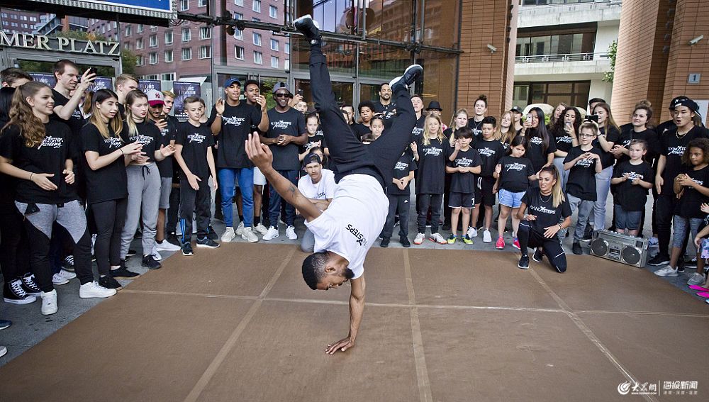 北京時間2019年6月26日凌晨,國際奧委會(IOC)在瑞士洛桑召開了第134次全會,會上一致通過了一項(xiàng)臨時草案,表示原則性同意將在2024年巴黎奧運(yùn)會上增設(shè)霹靂舞、滑板、攀巖及沖浪四個大項(xiàng)。圖為2017年8月9日,德國柏林,著名舞團(tuán)Flying Steps在波茨坦廣場劇院表演霹靂舞。