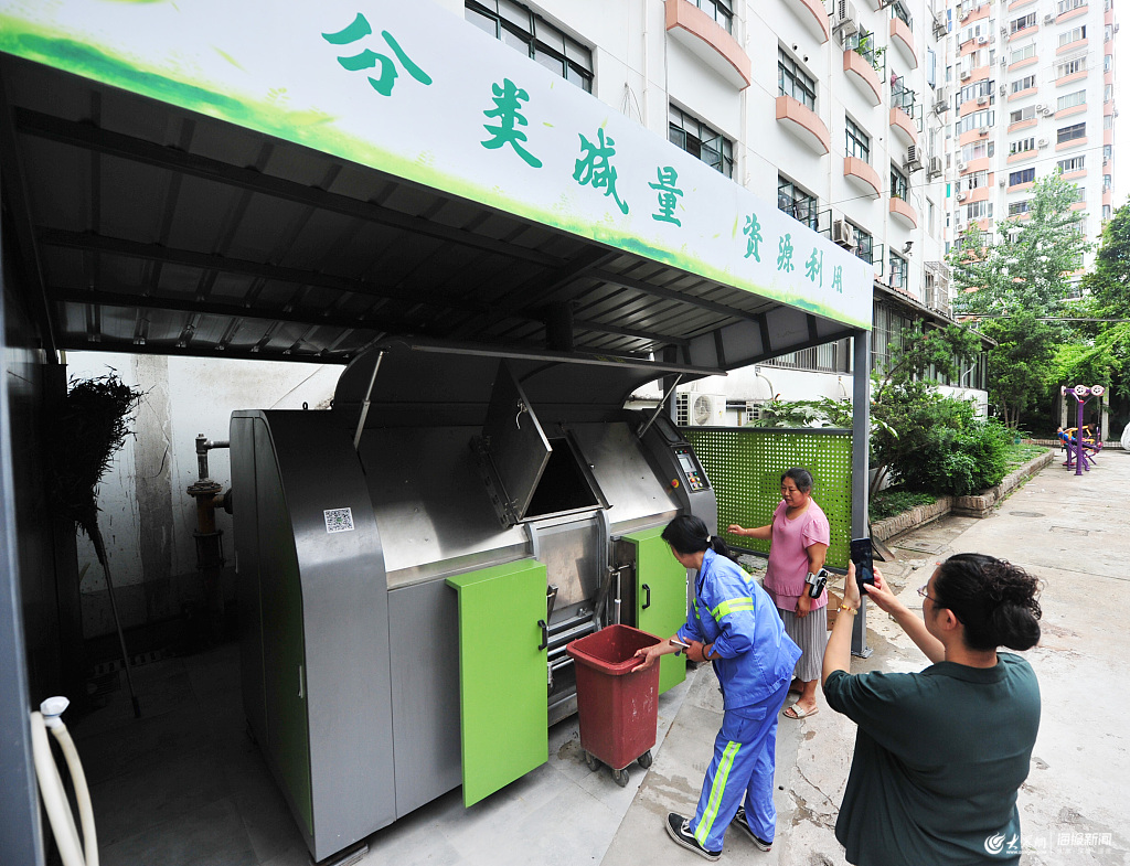 2019年7月1日,上海。為了讓每天產(chǎn)生的濕垃圾在源頭上減量化、資源化,黃浦區(qū)外灘街道瑞福小區(qū)新引進了一臺濕垃圾分類處理機,小區(qū)每天產(chǎn)生的濕垃圾不用再清運到專門的環(huán)衛(wèi)部門收集點,直接集中在這臺處理機進行無害化處理,平均每次處理200公斤左右。經(jīng)過處理的垃圾變廢為寶,全部成了濃縮的有機肥料,可以作為美化小區(qū)環(huán)境的花卉營養(yǎng)土,這一舉措既達到了濕垃圾“分類減量、資源利用”的環(huán)保理念,同時又減輕了環(huán)衛(wèi)工人的勞動強度。值得一提的是,這一濕垃圾分類處理裝置頗有“顏值”又十分環(huán)保,運作時沒有噪音,也沒有污水外溢現(xiàn)象,更沒有異味產(chǎn)生,頗受居民群眾好評。