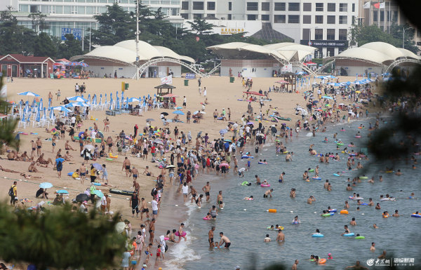 青島:游客海濱旅游享清涼