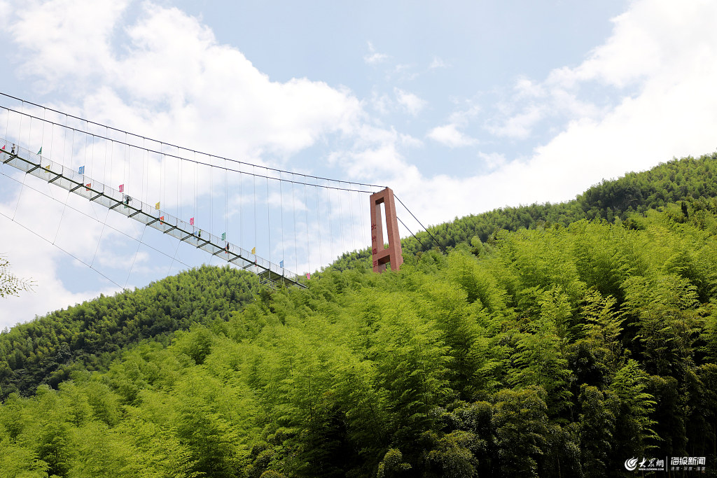 2019年7月6日,浙江湖州,安吉大竹海剛試營業(yè)玻璃天橋上游客絡(luò)繹不絕,站在高空欣賞連片的竹海美麗畫面。大竹海玻璃天橋橫跨兩座高山,全長468米,離地面高度107米,據(jù)悉,這也是中國最長的竹海玻璃天橋。