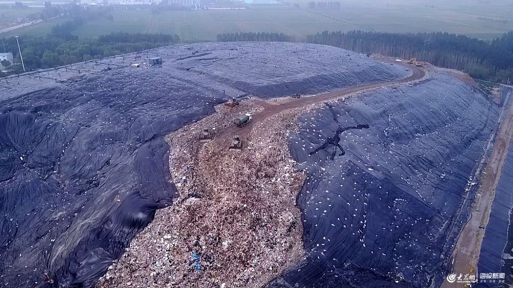 2019年7月10日,航拍濟南黃河北孫耿鎮(zhèn)生活垃圾填埋場。目前濟南每天運來的垃圾約5300-6000噸,僅有30—50%能夠用于焚燒發(fā)電,其余的繼續(xù)填埋。如此大的垃圾數(shù)量讓垃圾填埋場有點吃不消,倒逼垃圾分類加緊進行。