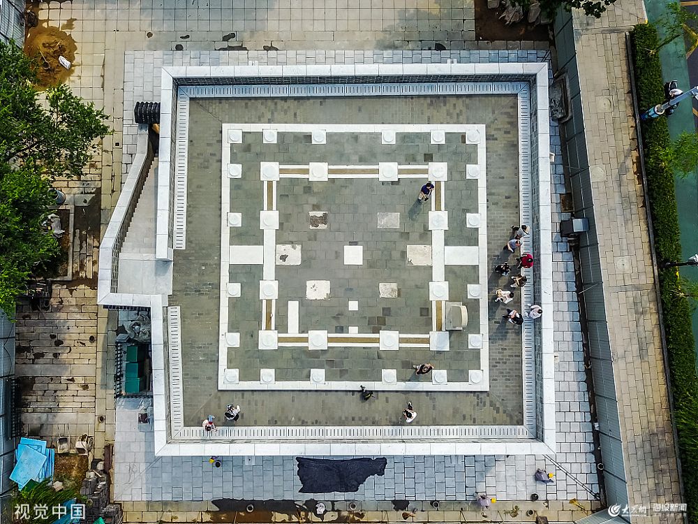 2019年7月23日,濟(jì)南明代鐘樓臺(tái)基雄姿重現(xiàn)。