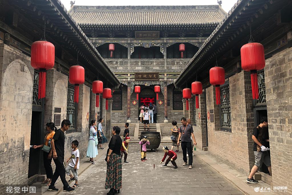 2019年8月1日,山西省晉中市,游客在祁縣喬家大院景區(qū)參觀旅游。文化和旅游部7月31日發(fā)布給予山西省晉中市祁縣喬家大院景區(qū)取消旅游景區(qū)質(zhì)量等級處理決定,祁縣文化和旅游局8月1日回應(yīng)稱,將立即開展整治行動,并同步啟動調(diào)查問責(zé)程序,對相關(guān)責(zé)任人嚴(yán)肅問責(zé)。 韋亮(山西分社)/中新社/視覺中國