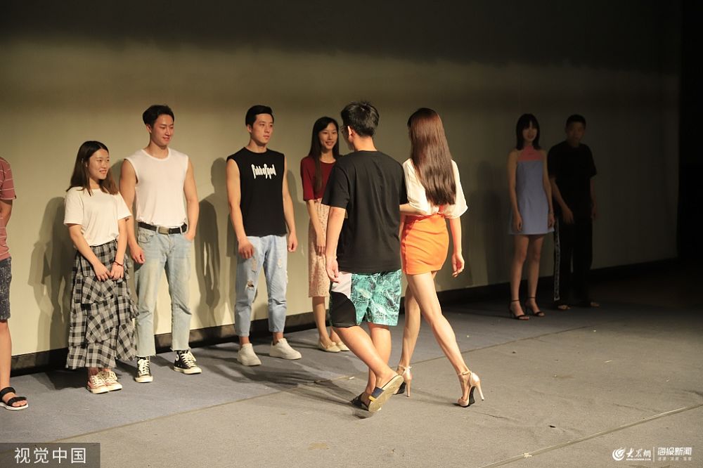 2019年8月6日,濟南,在山東政法學(xué)院禮堂內(nèi),一考研培訓(xùn)班請來模特走臺來緩解考研族的學(xué)習(xí)壓力。據(jù)了解,課間10分鐘,該培訓(xùn)機構(gòu)為了緩解學(xué)生的壓力,特意請來模特與學(xué)生一同體驗舞臺走秀。