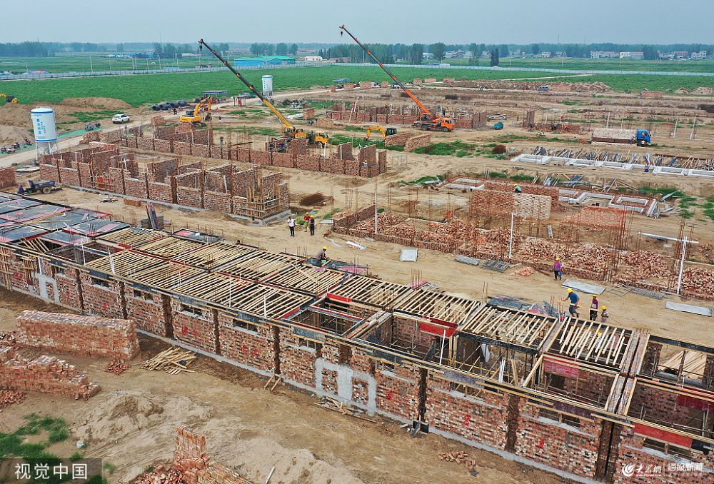 2019年8月6日,山東省菏澤市東明縣焦園鄉(xiāng)灘區(qū)遷建8號(hào)村臺(tái),施工人員正緊鑼密鼓地施工,為灘區(qū)百姓建設(shè)新家園。