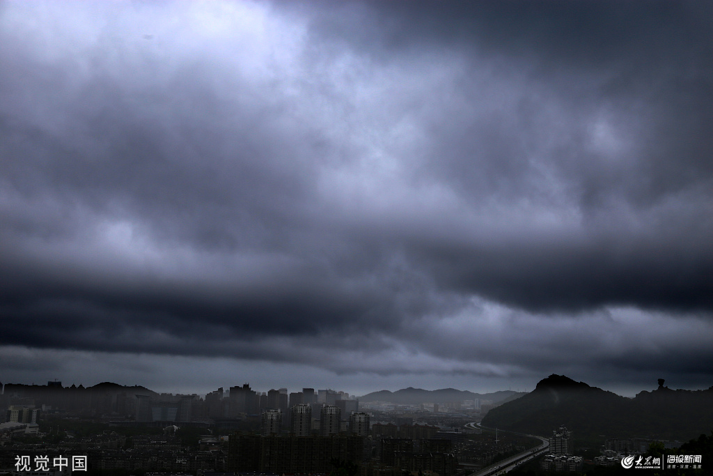 2019年8月9日上午,浙江臺州,受今年第9號超強(qiáng)臺風(fēng)“利奇馬”逼近的影響,溫嶺市城區(qū)黑云壓城,時(shí)不時(shí)刮起強(qiáng)風(fēng)下著暴雨,溫嶺石塘鎮(zhèn)和城南鎮(zhèn)沿海潮水掀起巨浪拍打著堤壩和礁石。