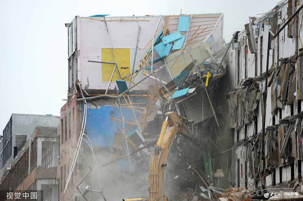 2019年8月9日,北京朝陽,在廣渠東路北側(cè)百東鐵路西側(cè),違建公寓正在拆除的施工現(xiàn)場。拆除后將成為“中國·水谷”再生水濕地公園延展。