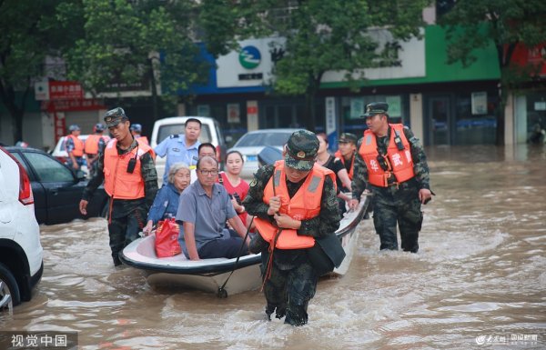 2019年8月12日,濟(jì)南,受臺(tái)風(fēng)“利奇馬”影響,章丘區(qū)部分村莊積水嚴(yán)重。東皋西村受災(zāi)最嚴(yán)重地區(qū)水深超過(guò)1米,部分地區(qū)水深達(dá)3-4米。當(dāng)?shù)夭块T(mén)緊急調(diào)派鏟車(chē)和直升機(jī),對(duì)受困群眾進(jìn)行轉(zhuǎn)移。