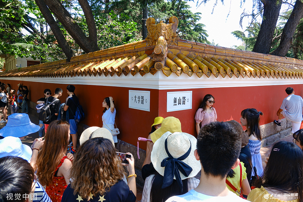 2019年8月17日,青島,位于大學(xué)路的“青島網(wǎng)紅墻”每天吸引大批游客排隊(duì)打卡拍照。