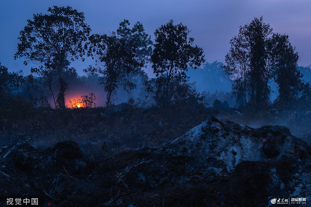 當(dāng)?shù)貢r(shí)間2019年8月22日,印尼廖內(nèi),當(dāng)?shù)匕l(fā)生森林大火,強(qiáng)風(fēng)和不易進(jìn)入火災(zāi)區(qū)域讓滅火工作困難重重。