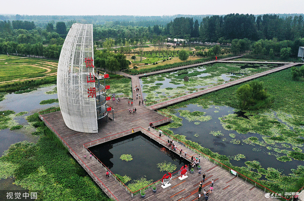 2019年8月24日,山東棗莊,游客在微山湖濕地觀賞睡蓮。