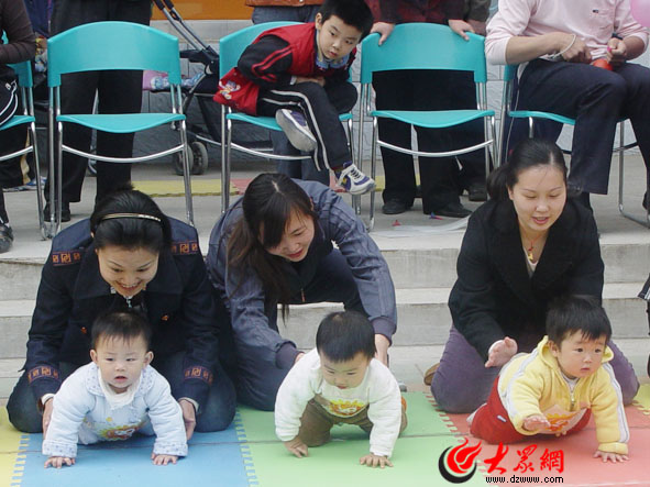 大眾網(wǎng)4月9日訊 近日,二七新村街道辦事處建南社區(qū)計(jì)生協(xié)在世紀(jì)家園北門舉行了一場別開生面的計(jì)生早教宣傳活動,通過舉行寶寶爬行大賽、發(fā)放宣傳材料,廣泛宣傳早期教育知識及新型生育文化。 寶寶爬行大賽吸引了社區(qū)內(nèi)80個(gè)家庭的小寶寶參加,其中年齡最小的才7個(gè)月。比賽中,寶寶們各展絕活“奮勇前進(jìn)”,逗得現(xiàn)場觀眾笑聲不斷;顒蝇F(xiàn)場,擺放著各類宣傳掛圖,社區(qū)工作人員向居民發(fā)放了宣傳資料500余份,內(nèi)容包括政策法規(guī)、早期教育、優(yōu)生優(yōu)育等方面。(王曄)
