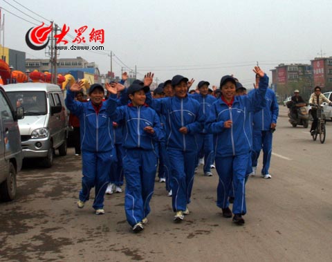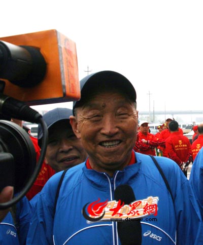 來自濟(jì)南染織廠的退休職工牛玉明老人是長(zhǎng)跑隊(duì)中的年齡最大的一個(gè),他向我們介紹,退休后,自己就時(shí)常和老工友約好出來跑跑步做做運(yùn)動(dòng),牛老說:“現(xiàn)在我的身體條件很好,相信從濟(jì)南跑到北京沒有問題。雖然我是長(zhǎng)跑隊(duì)中年紀(jì)最大的一個(gè),但一定會(huì)堅(jiān)持到最后,把咱濟(jì)南市民對(duì)08奧運(yùn)的盼望和祝福帶到北京。據(jù)了解,“迎奧運(yùn),跑向北京”長(zhǎng)跑活動(dòng)的31名隊(duì)員平均年齡56.3歲。