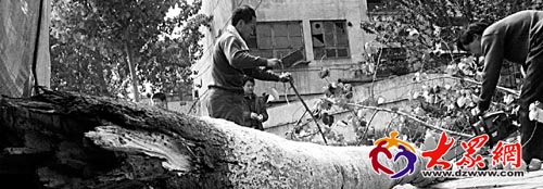 大樹被大風(fēng)攔腰折斷,工人緊急排險(xiǎn)。(記者 石念軍 攝) 生活日報(bào)4月17日訊(記者 石念軍)16日夜,省城瞬間風(fēng)力最高達(dá)到9級。巨大的風(fēng)力給人們的生活直接帶來了影響,甚至直接威脅到人們的生命財(cái)產(chǎn)安全。昨夜今晨,記者接到讀者反映后第一時(shí)間趕赴多個(gè)現(xiàn)場,記錄下了大風(fēng)中的一些人和事。 現(xiàn)場一 時(shí)間:16日晚8:00許 地點(diǎn):龍洞路某大型工地工人宿舍 板房吹“禿”頂工人連夜忙搬家 16日晚8:00許,龍洞路南段一工地宿舍門口,七八個(gè)工人正在收拾一大堆的泡沫板。 這一宿舍院內(nèi)南北兩側(cè),均是一排二層的宿舍。二樓房屋系泡沫板搭成的板房。此時(shí),南側(cè)一排宿舍的二樓東段的五六間板房的房頂都已被洞穿,十多個(gè)工人正提著被子和大包的行李往外“搬家”。而在門口,已有十多位工人已守著行李,等待安排新的住所。 工人介紹,當(dāng)晚7:00許,因風(fēng)力太大,這五六間板房的房頂一下子都被風(fēng)掀了下來。 現(xiàn)場二 時(shí)間:16日晚10:10許 地點(diǎn):洪樓附近某校園內(nèi) 大樹迎風(fēng)倒一女生不幸喪命 16日晚10:10許,風(fēng)聲呼嘯。洪樓附近某校園內(nèi),學(xué)生多已休息,校園內(nèi)行人稀落。道邊綠化樹的樹冠呼呼搖擺。 該校園足球場與15號研究生公寓間的一片小樹林中,成排的自行車不少都已倒地。而一棵高約20多米、最大直徑約30厘米的楊樹被吹倒在地,樹梢橫倒在小路邊。 15號公寓內(nèi)的一位女生親眼目睹了事發(fā)時(shí)的情形。據(jù)她介紹,當(dāng)時(shí)是16日晚10:10許。當(dāng)時(shí),她和同伴正在趕回公寓的路上。而走到小樹林附近時(shí),她因接一個(gè)電話而放慢了腳步。不一會兒,已經(jīng)走到前邊的同伴喊她快走。結(jié)果,兩人這才發(fā)現(xiàn),就在她們之間的路面上,已經(jīng)倒下了一棵樹。她剛要起腳邁過,卻又突然發(fā)現(xiàn)樹下躺著一個(gè)女生!“女生的頭被壓在樹下,已經(jīng)流了很多血……” 該女生立馬撥打?qū)W校保衛(wèi)科的電話,同時(shí)撥打120。受傷女生很快被送往醫(yī)院急救。 后據(jù)了解,受傷女生被送往醫(yī)院后,傷重身亡。 現(xiàn)場三 時(shí)間:17日上午9:00—10:00 地點(diǎn):二環(huán)東路省輕工業(yè)學(xué)院門口附近、花園路路口東南角 多條路段大樹傾倒 工人緊急搶險(xiǎn) 17日上午9:00許,二環(huán)東路省輕工業(yè)學(xué)院門口南北兩側(cè)的人行道上,分別有一棵直徑約20厘米的楊樹從根部倒地、一棵直徑約30厘米的楊樹樹冠折斷后墜地。 12319工作人員和園林搶險(xiǎn)工作人員正在現(xiàn)場處理,防止影響交通。 9:30許,在二環(huán)東路與花園路路口東南角人行道上,也有一棵直徑約30厘米的楊樹從底部折斷,幸好樹干傾倒后,樹冠砸到了北側(cè)另一棵大樹上才沒有倒地。但因17日上午的風(fēng)力仍舊較大,這一情況讓過往行人無不提心吊膽。隨后,園林搶險(xiǎn)工作人員也趕到現(xiàn)場,將傾倒的大樹進(jìn)行了清理,確保交通安全。 |