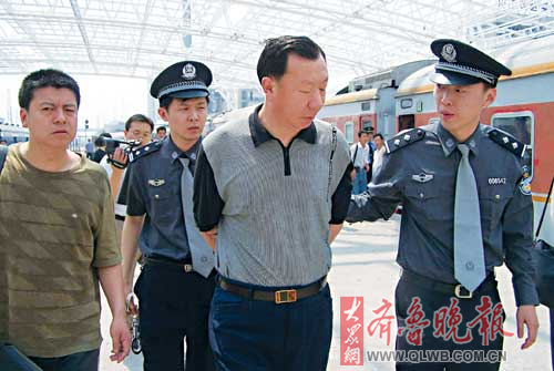 。比罩形纾睍r30分許,從沈陽北開過來的1033次列車駛進濟南火車站站臺,歷下公安分局經(jīng)偵大隊大隊長毛偉杰等快速向2號車廂跑去。一名背著手的高個男子在兩名便衣男子的夾擊下走下列車。