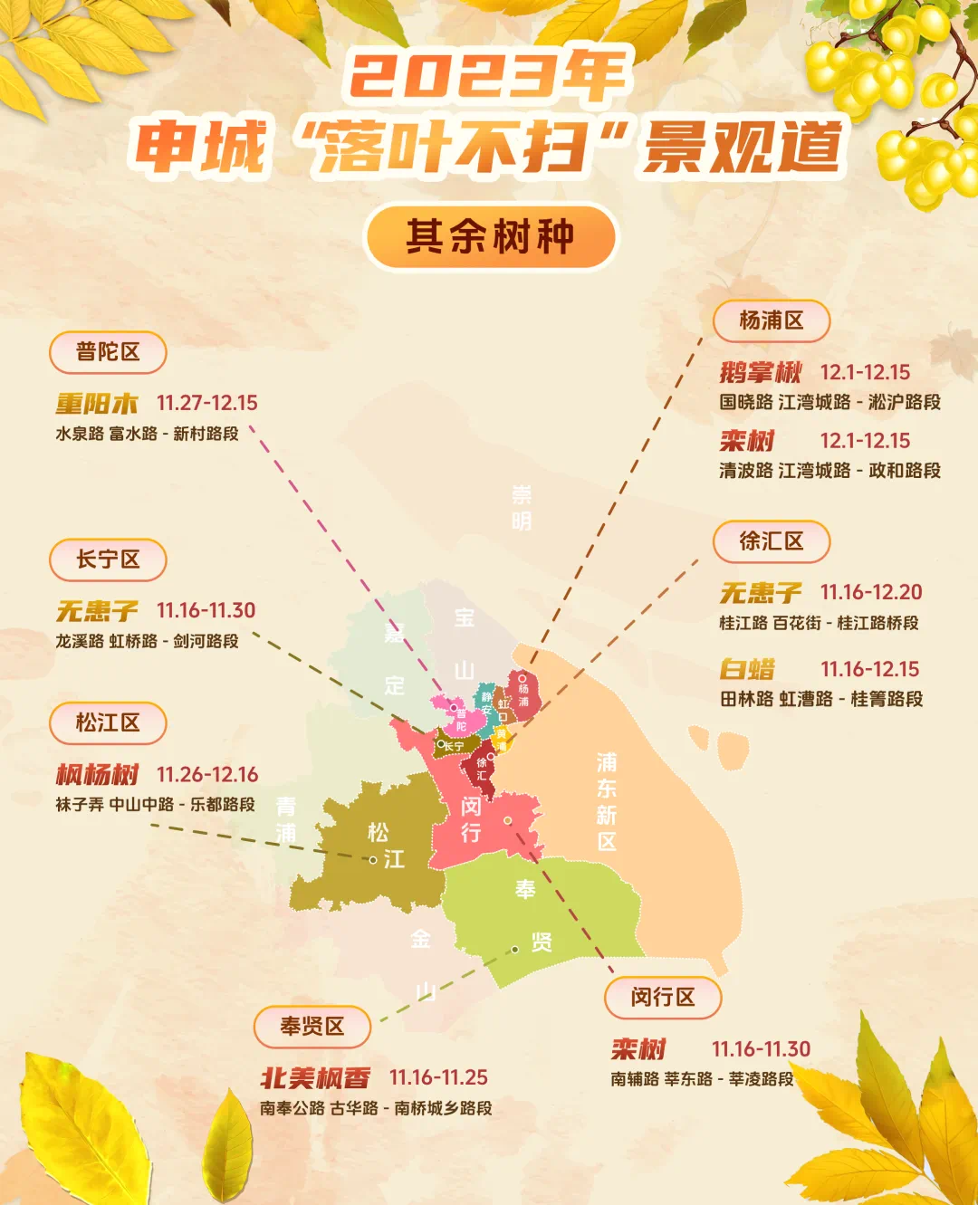 目前,上海市第一批景觀道的“落葉不掃”模式即將結束,與此同時,第二批“落葉不掃”的景觀道也將于12月份開啟。限定美景,一葉知秋,快帶上相機來到街頭,感受這份屬于上海的秋日浪漫吧。