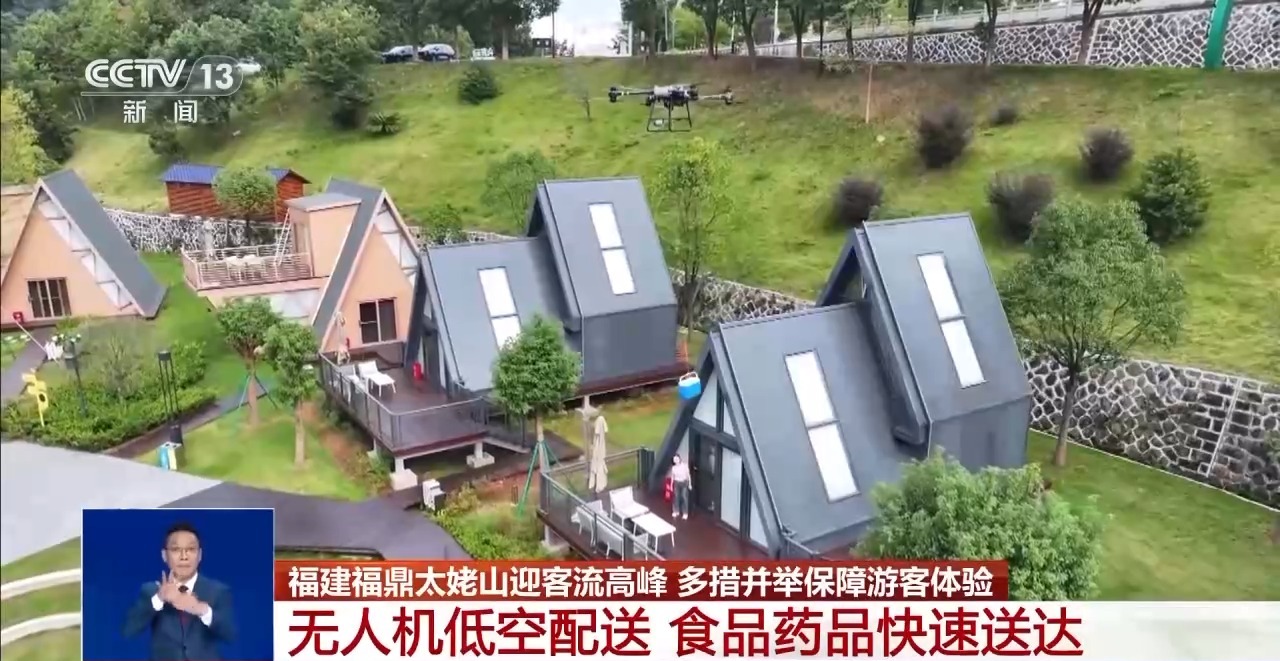 總臺(tái)記者 彭雨佳:為了給游客帶來(lái)更加便利的體驗(yàn),今年,景區(qū)還配備了送餐無(wú)人機(jī),游客們只需要掃碼點(diǎn)餐,無(wú)人機(jī)就可以在十五到二十分鐘內(nèi),把餐食送到山頂或指定觀景平臺(tái)。除了送餐,無(wú)人機(jī)還能隨時(shí)配送應(yīng)急商品、藥品等。